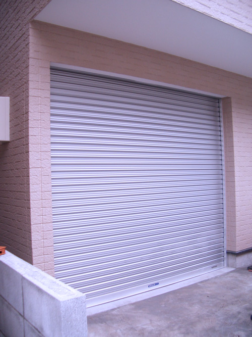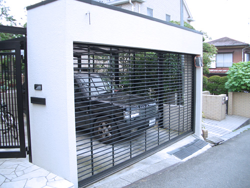 スリムなアルミパイプとリンクの生み出すシャープなグリルデザインが店舗、事務所、ガレージに気品ある美しさをもたらします。堅牢なシャッターとしての機能とシースルー感抜群のショーウィンドウ効果をあわせ持った車2台分のシャッター(オーダーメイド)です。