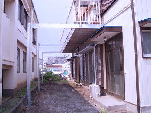 敷地いっぱいまで柱を出せる馬梁仕様納まり。思いのままに利用でき屋根付のガレージや自転車置き場として、スペースを有効に活用していただけます。柱は鉄骨に溶融亜鉛めっきをし防食皮膜として優れています。