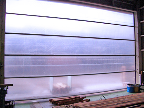 高速シートシャッターは頻繁な搬入、搬出を繰り返しながらも、異物の流入(風 、ホコリ、虫)などをシャットアウトすること、また空調を安定させることで扱う製 品の質の低下を防ぐほか、ニオイの発生する作業場の場合には、その流出を抑えます。
